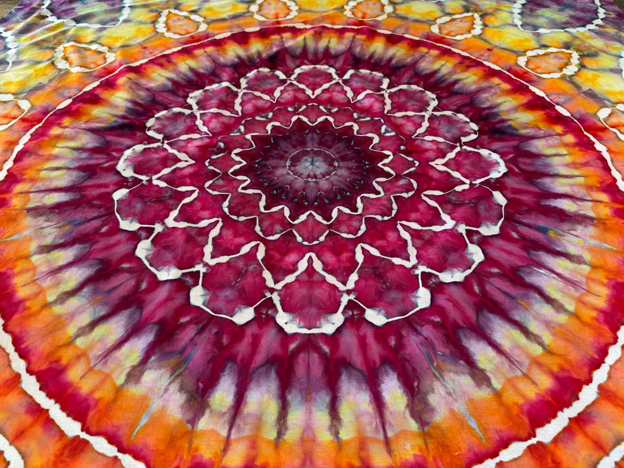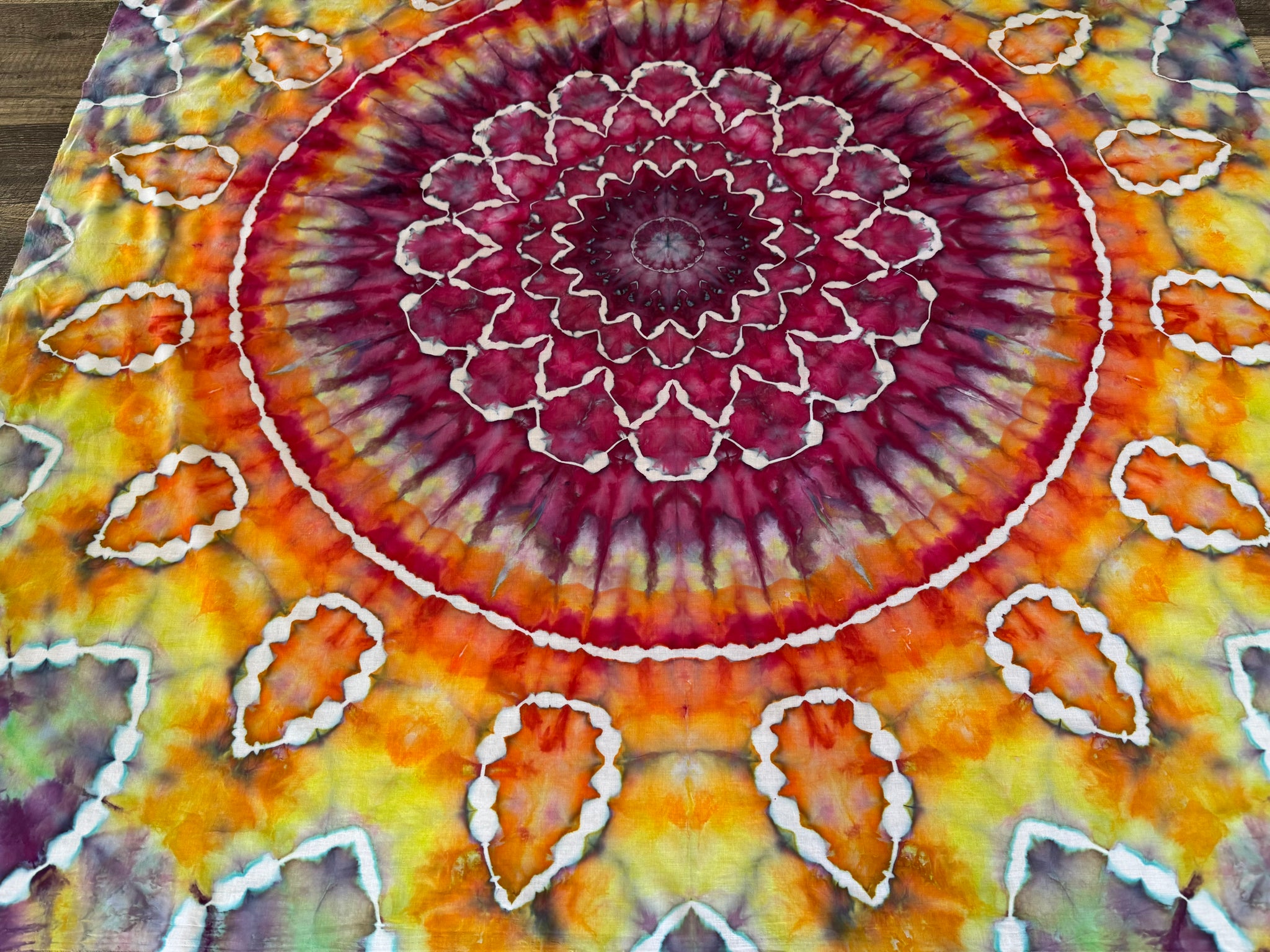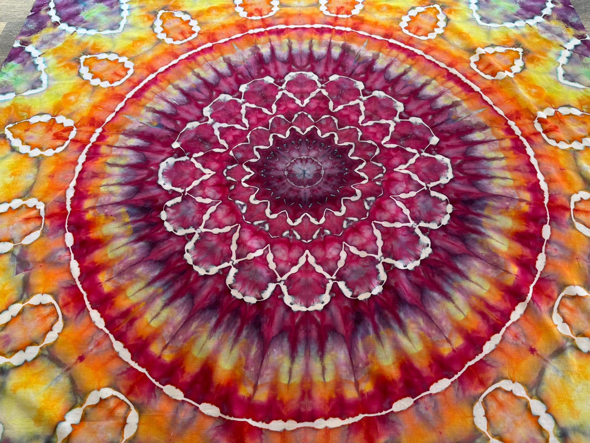 These big sheets of fabric can be used for many things... hang it to add psychedelic deliciousness to your wall space, drape it on a bed or cover a table. These are perfect to take with you to festivals or gatherings... dance with it, dunk it and wear it, sit on it and hang it from your ezUp for shade and psychedelic ambiance 🍄